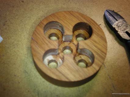 Tog väl ca 10 minuter med en Dremel-kopia. Foten är en träbit jag sågade ett