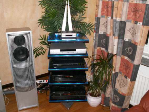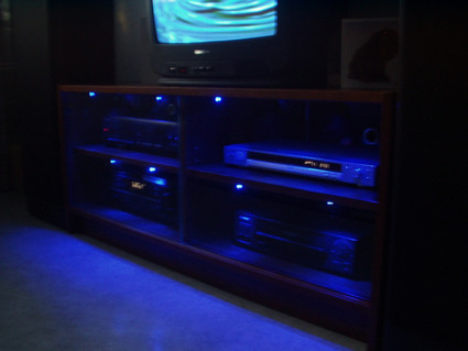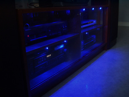 3st blå Lysdioder i bakre kant på varje glasvåning. Mycket effektfullt.