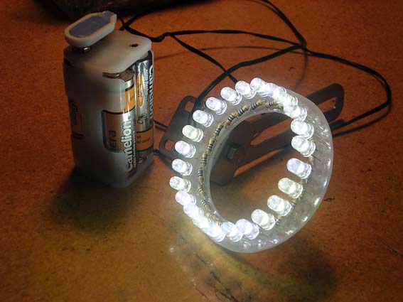 Ljusringen lyser kontinuerligt när du ansluter den till batterihållarer och